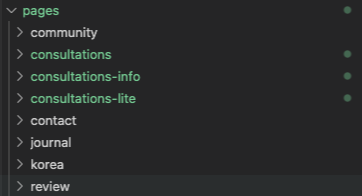 ReactJs와 다르게 별도의 라우터 구성없이 파일 디렉토리 구조만 구축하면 라우팅이 가능합니다. 파일 폴더명이 소문자인 법칙만 지키면 아주 편한 기능입니다.