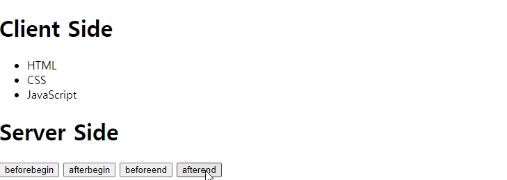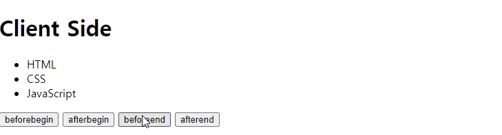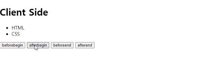 'beforebegin' ,'afterbegin', 'beforeend', 'afterend'들을 인수에 사용해서 위치를 조정할 수있다.