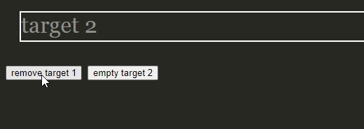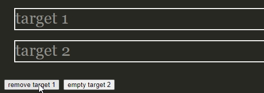 제거와 관련된 API는 remove와 empty가 있다. remove는 선택된 엘리먼트를 제거하는 것이고 empty는 선택된 엘리먼트의 텍스트 노드를 제거하는 것이다.