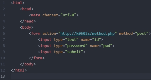 method는 form의 내용 정보를 post로 처리할지 아니면 get으로 처리할지 정버 처리 방식을 지정한다.