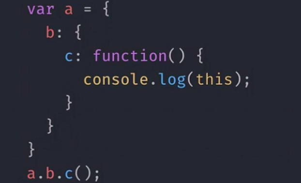 - 오른쪽 코드 또한 메소드 c '점' 앞의 a.b가 this라고 볼 수 있다. a.b는 c객체를 가르키므로 메소드이 함수의 this는 c 객체를 가르킨다.
