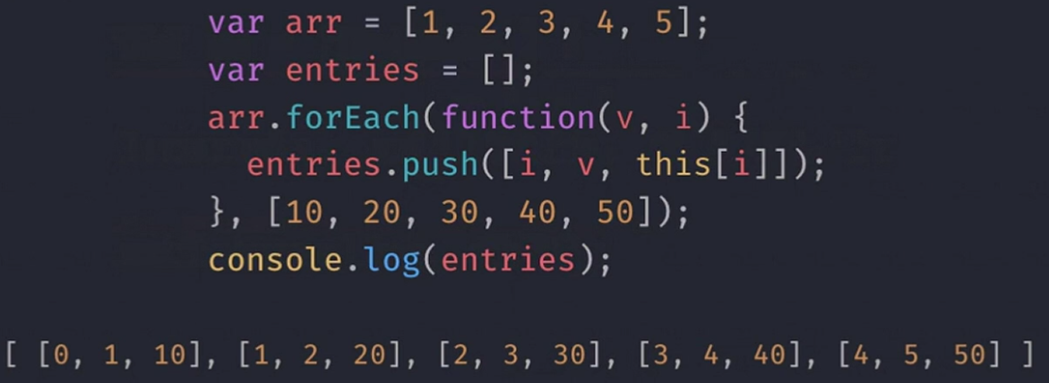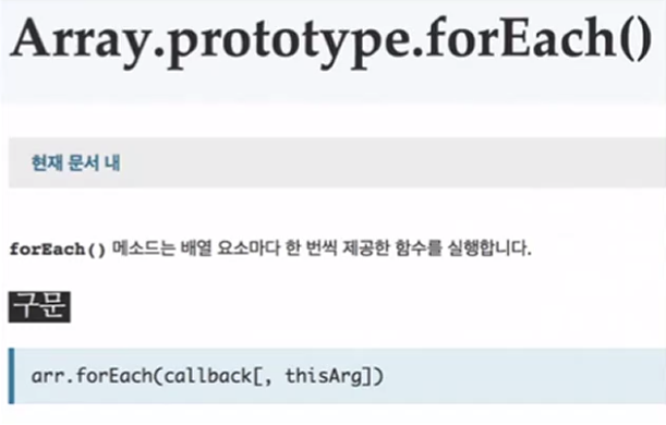 - 여기서 forEach 메소드는 첫 번째 인자로 콜백 함수, 두 번째 인자로 배열이 들어가게 되어있다.