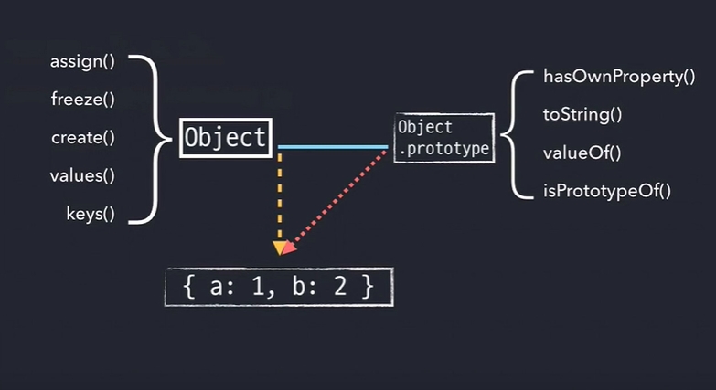 - 그래서 할 수 없이 object 생성자 함수는 prototype으로 말고 생성자 자신 자체에서 쓸 수 있는 메소드들을 따로 넣어두었다.