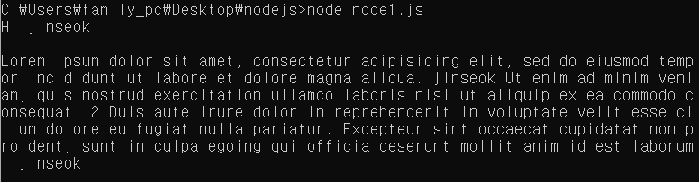 위와 같이 node1.js 파일의 자바스크립트 코드의 결과들이 나오는 것을 확인 할 수있다.
