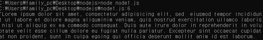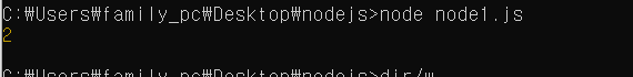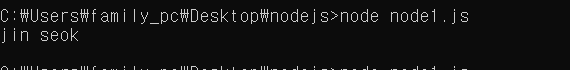그리고 node node1.js을 입력하면 자바스크립트 언어를 코드로 저장한 js파일에 연결된다.