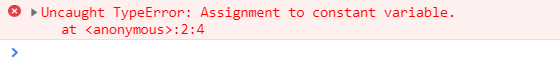 - 또 마찬가지로 블록 스코프로 적용되어 외부에서 접근할 수 없지만 let과 다르게 재할당이 안된다.