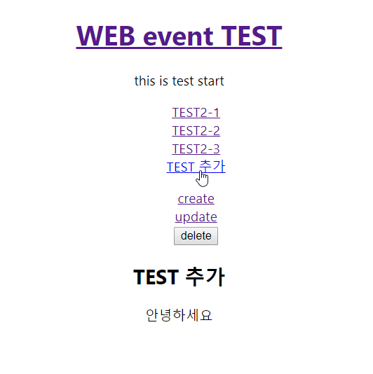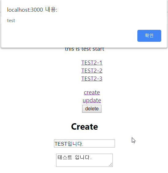 // <li>마다 create, update, delete 각각의 링크를 걸어주어 클릭 이벤트 발생시 각각