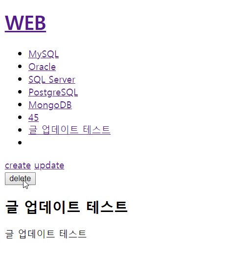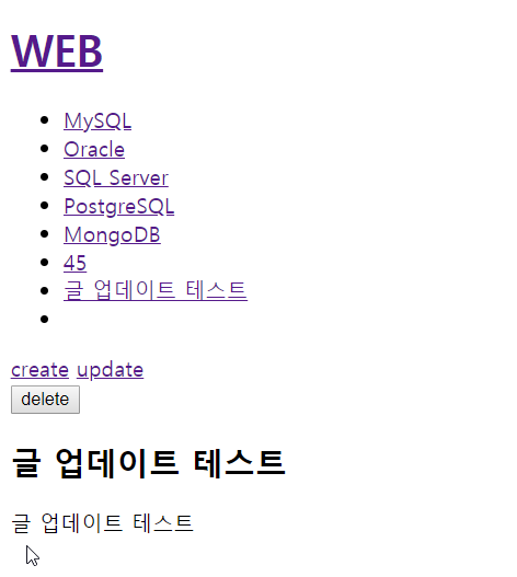 생성 테스트를 했던 목록을 업데이트를 통해 수정하였더니 그대로 방영된 것을 확인 할 수 있었다.