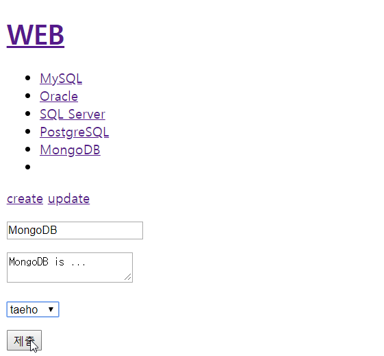 업데이트를 눌렀을때 원래 선택하고 있었던 콤보 박스 그대로 등장하며 다른 콤보 박스 선택을 하고 업데이트를 위하여 submit하자 그대로 방영된 것을 확인 할 수 있었다.