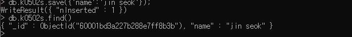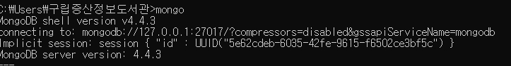 cmd 터미널에 가서 'mongo'을 명령해주면 자동으로 몽고 프로그램이 실행된다.