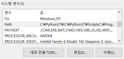 그리고 환경 변수에 들어가서 path을 편집하여 C:\Program Files\MongoDB\Server\4.4\b(버전마다 다르니 버전 값 유의하자.)을 경로를 추가 설정해준다.