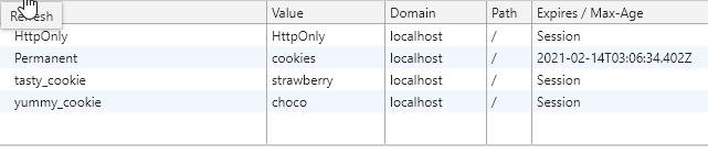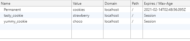 크롬 개발자로 쿠키 데이터를 보면 Permanent cookie가 적용된 쿠키는 지금으로부터 한 달 뒤에 만료된다고 표시되어 있는 것을 확인 할 수 있다. 오늘 날짜는 2021-01-15이다.
