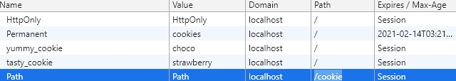 - 쿠키 값 뒤에 Path=/cookie을 붙여주면 /cookie 경로 및 /cookie의 하위 경로에서만 쿠키 값이 살아있다는 의미로 받아드릴 수 있다.