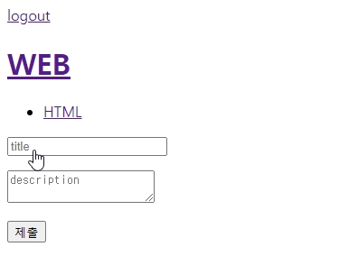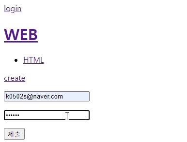 </form>` , authStatusUI(request, response) //login, logout 상황 별 전환