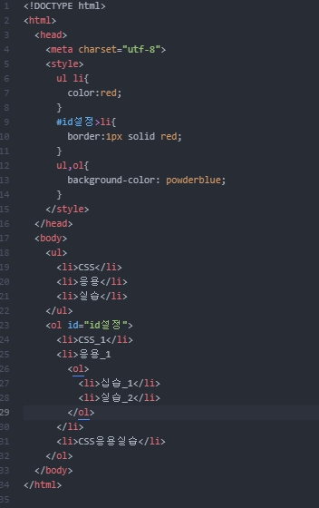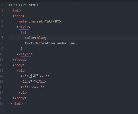 id만으로 특정 텍스트에 효과를 주는 것에는 하나 하나 씩 해줘야하는 한계가 있어 미리 CSS 부분에서 해주는 선택자 설정이 있다.