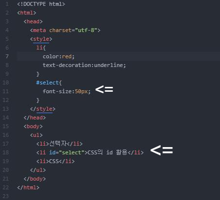 - CSS에는id="select"의 select에다 '#'을 앞에다가 붙여줘야 CSS부분에서 id을 받아준다.