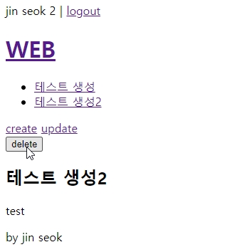 원래 글을 생성했던 사용자 아이디로 업데이트는 가능하다.