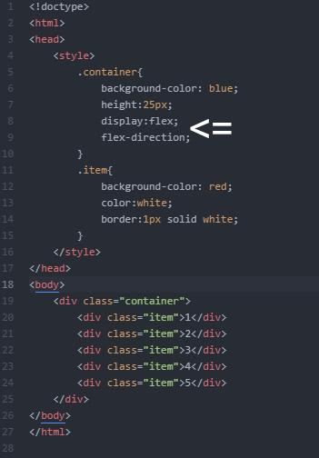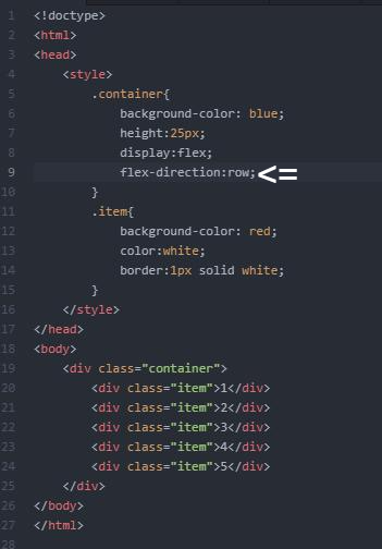 flex를 사용하기 위해서는 컨테이너 태그에 display:flex 속성을 부여해야 한다. 또한 flex-direction을 이용해서 정렬 방향을 바꿀 수 있다. 방향 설정을 row을 추가하지 않아도 기본은 row로 설정된다.