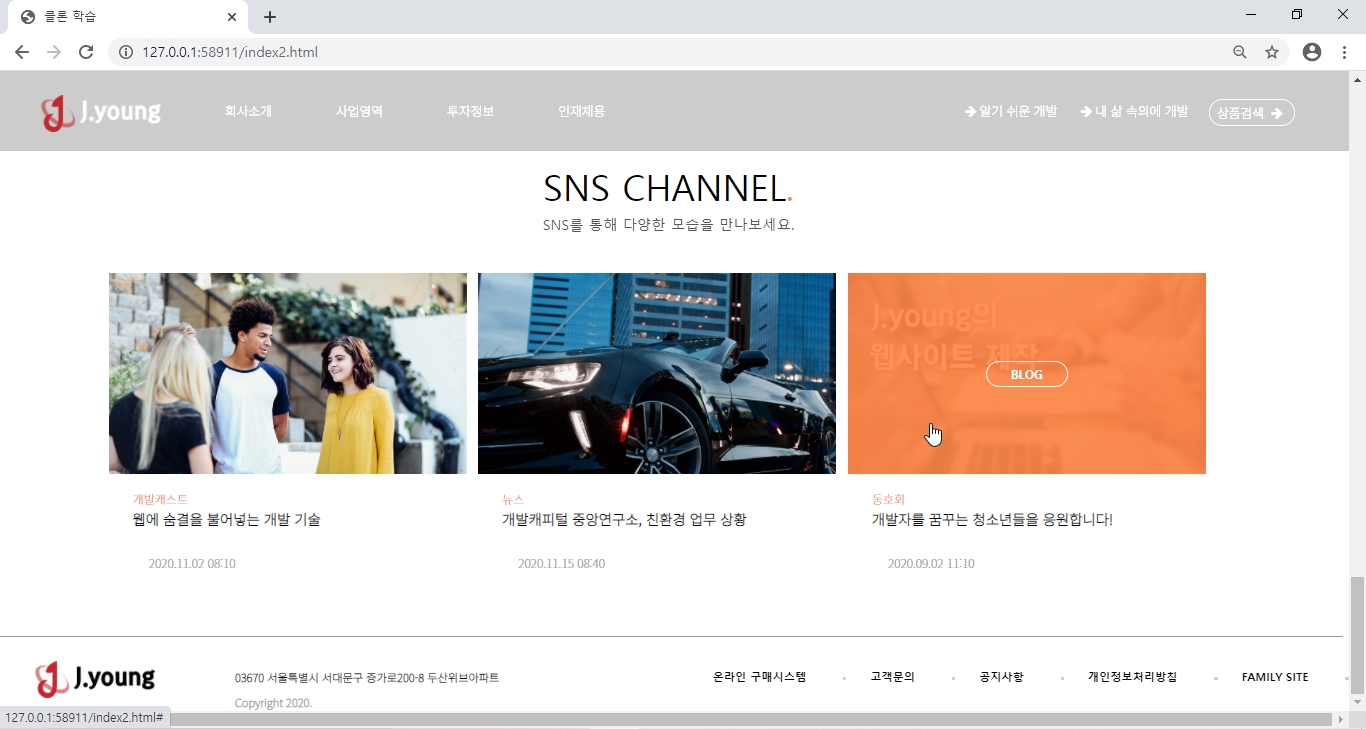 | HTML CSS (feat. jQuery) 간단한 포트폴리오 웹 사이트 코딩. (0) | 2020.10.27 |