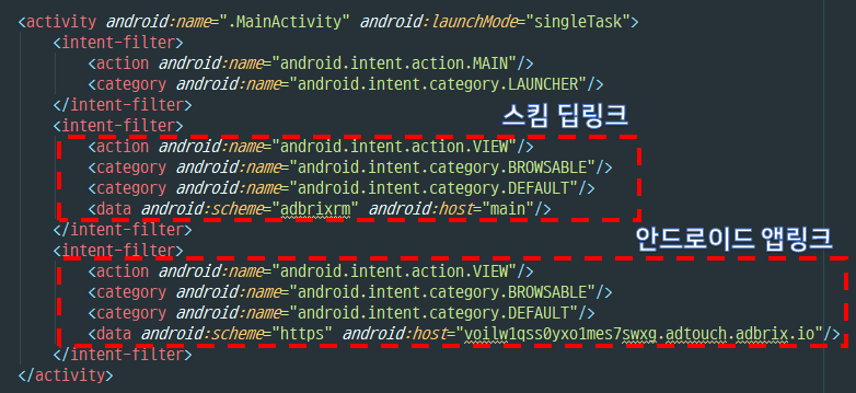 <data android:scheme="tudal-unlisted" />이 부분에서 스키마 값 이름이 딥링크의 프로토콜 이름이라고 보면 되겠습니다.