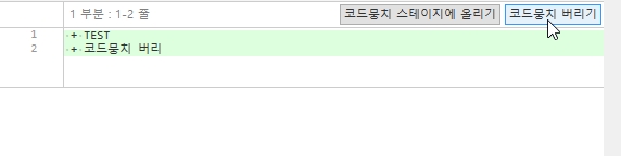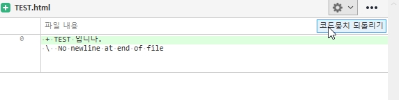 변경사항에서 되돌릴 파일을 선택하고 "코드 뭉치 버리기" 를 선택한다.