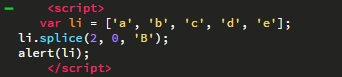 - array.splice(index, howmany, element1, ...., elementN); 첫번째 인자는 배열에 추가할 특정 배열의 위치를 가르키며 두번째 인자는 index에서부터 제거될 원소들의 수. index부터 index+howmany에 해당하는 원소들은 삭제되게 한다. 이 값이 0이면 어떠한 원소도 삭제되지 않는다. 세번째 인자는 index와 index+howmany 사이에 추가될 값이다.