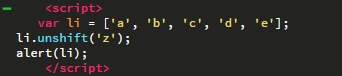 - Unshift는 배열의 시작점에 원소를 추가하는 방법이다. 인자로 전달한 값을 배열의 첫번째 원소로 추가하고 배열의 기존 값들의 색인을 1씩 증가시킨다.