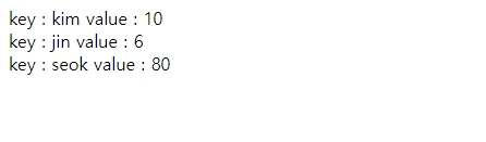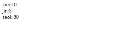 - 'kim'은 key가 되고, 10은 value가 된다.