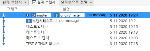 - 다시 master에 들어가 보니 맨 위의 브렌치가 프로젝트 변화에 움직여 다시 추가 변경되어 있다.