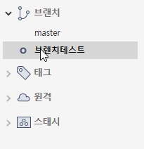 - 소스트리 왼쪽을 보면 브랜치-master라고 적혀있는 것을 볼 수 있다. master을 더블 클릭하면 브렌치를 볼 수 있다.