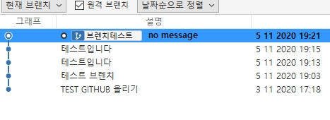 - 방금 커밋 푸시한 위의 프로젝트에 대한 브렌치를 master을 더블 클릭하여 보면 맨 위의 가장 최신의 수정된 브렌치에 저장되어 있는 상태를 확인 할 수 있다.