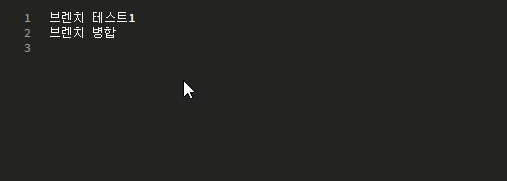 - 일단 헤드인 master 환경에서 "브랜치 병합"이라고 써주고 저장 후 커밋해준다.