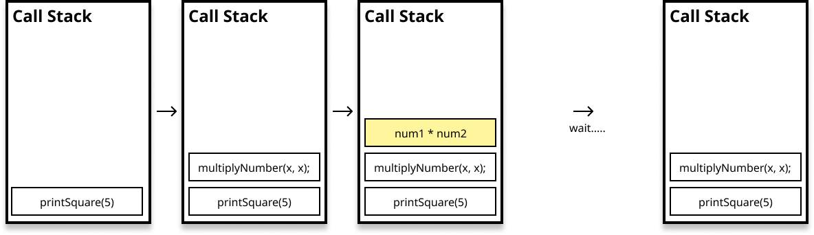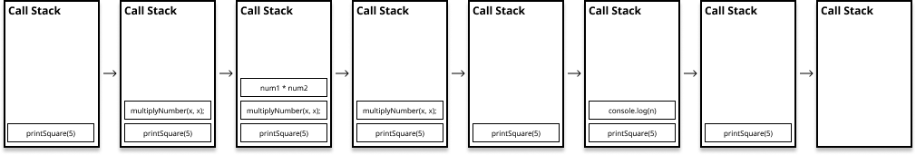 예를 들어 위의 함수를 실행하면 아래와 같은 Call Stack이 차례대로 생기게 됩니다.