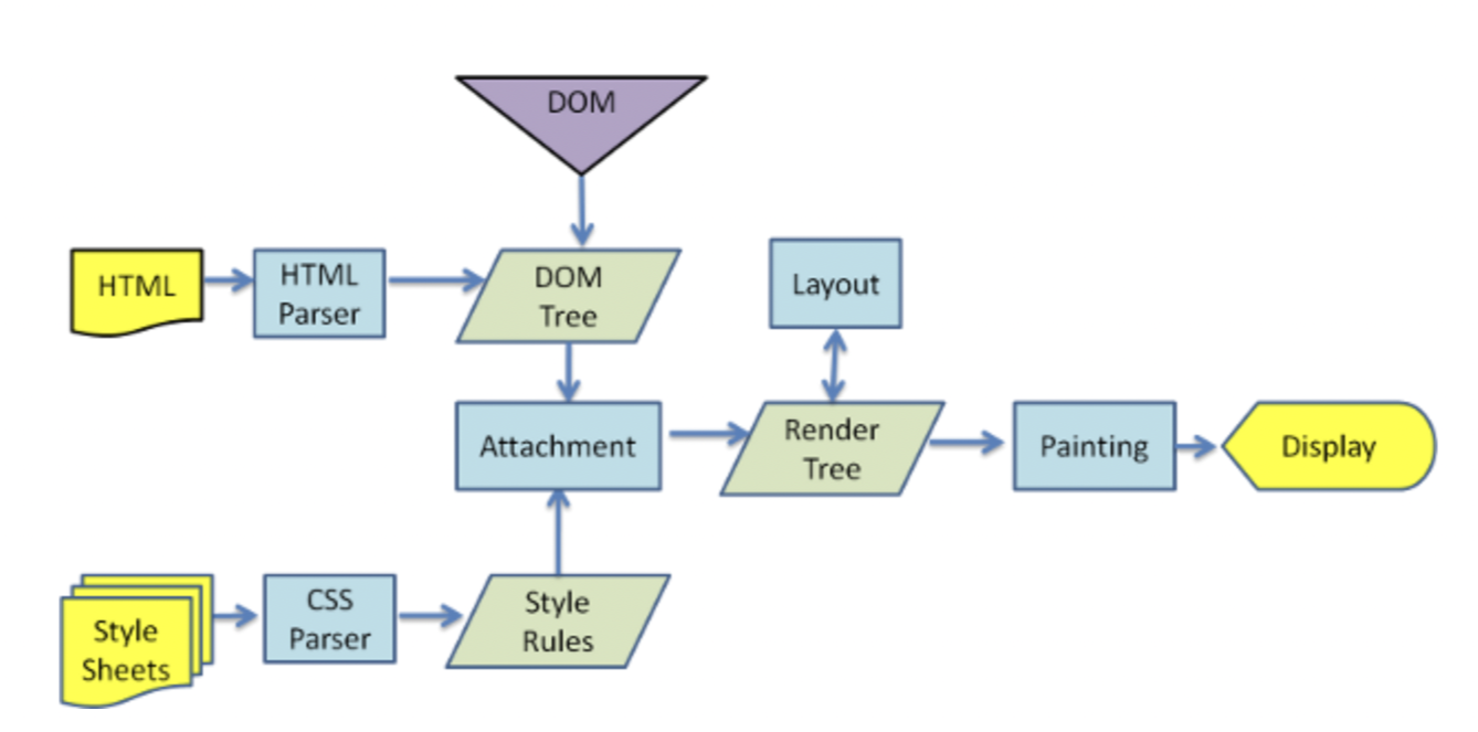 - 따라서 모든 HTML 요소들을 렌더링 엔진으로 넣어서 한번에 출력하는 것이 아니라, 일부 콘텐츠는 먼저 트리 과정을 거쳐 스크린에 나타나고, 그 와중에 웹의 다른 요소들은 네트워크를 통해 렌더링 엔진으로 읽어들어 오는 순차적인 방식으로 입출력이 진행됩니다.