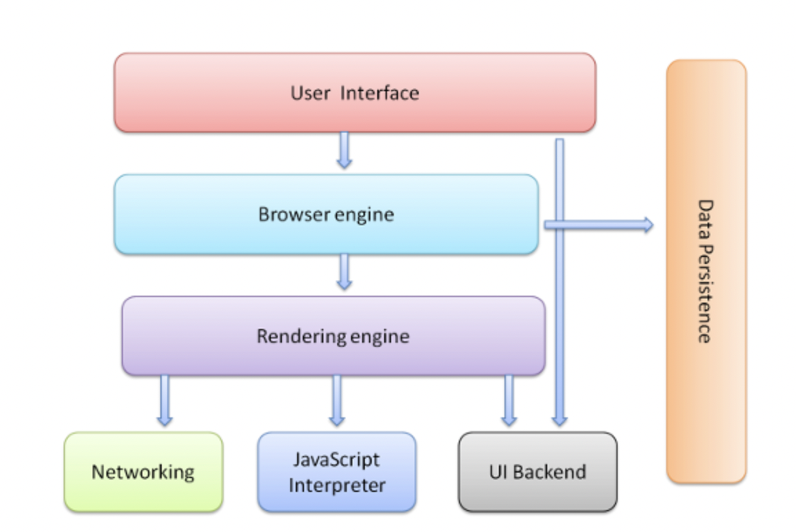 - 브라우저 엔진(Browser engine): UI와 렌더링 엔진(Rendering engine) 사이에서 중간 매체 역할을 수행합니다.