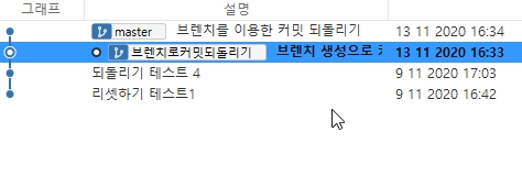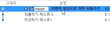 - 되돌릴 커밋 대상으로 브랜치 생성