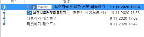브렌치를 이용한 커밋 돌리기 실핼 순서
